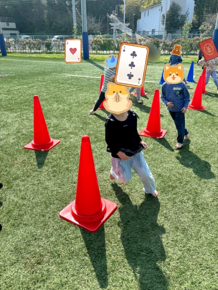 天気が良かったこともあり、子どもたちはいつものようにグラウンドに着くやいなや、裸足になって足裏に芝生の感触を確かめながら、走り回っていました。