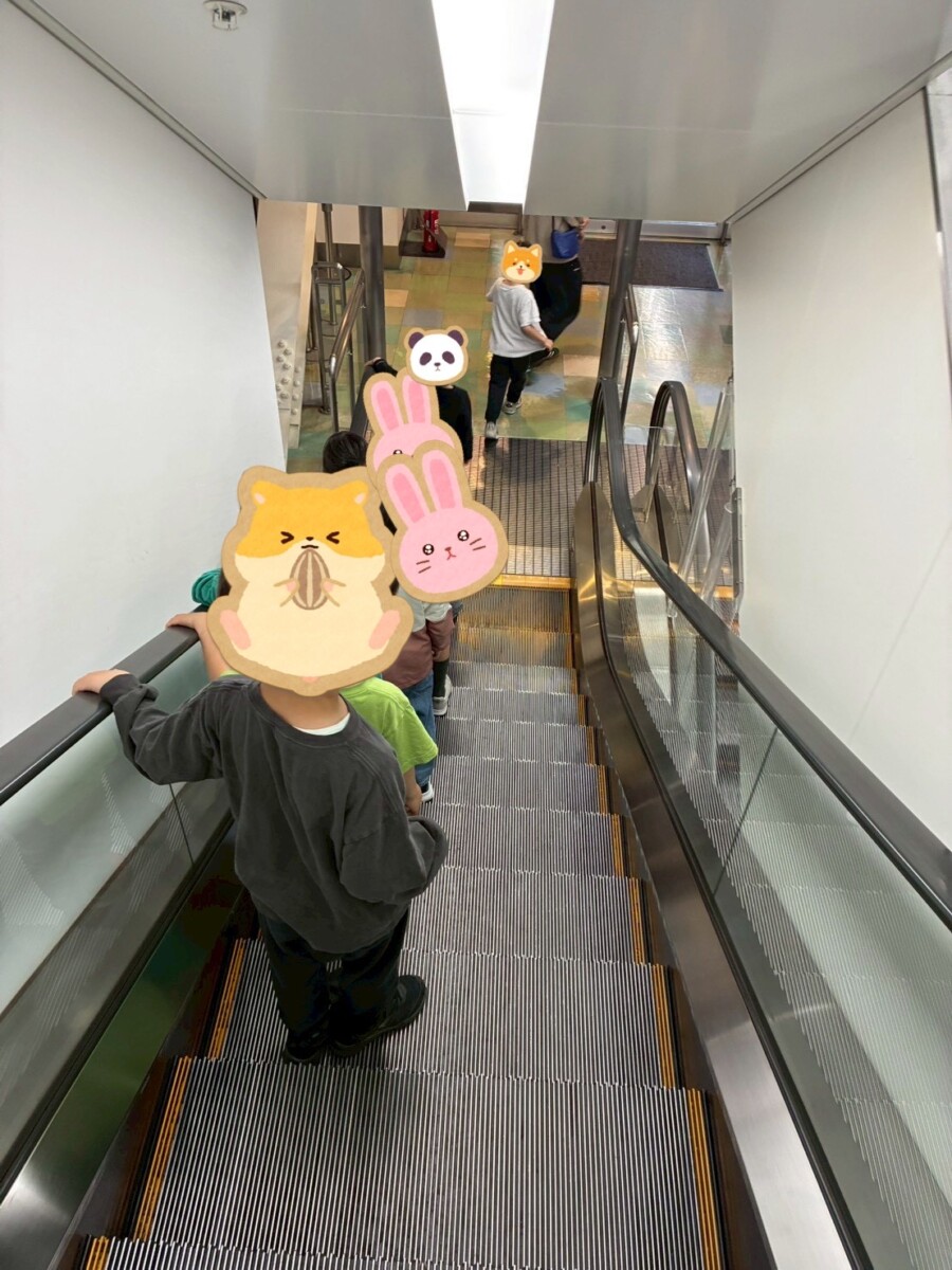 <エスカレーターも、他のお客さんに邪魔にならないように1列に並ぶことができています>