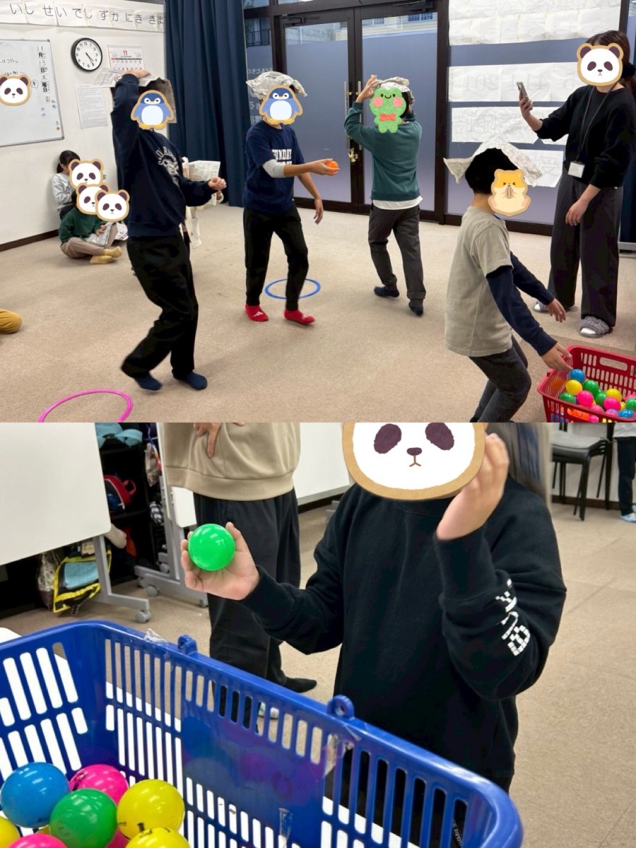 ボールを床から取ってみるという動きを通して、活動の練習を行いました!