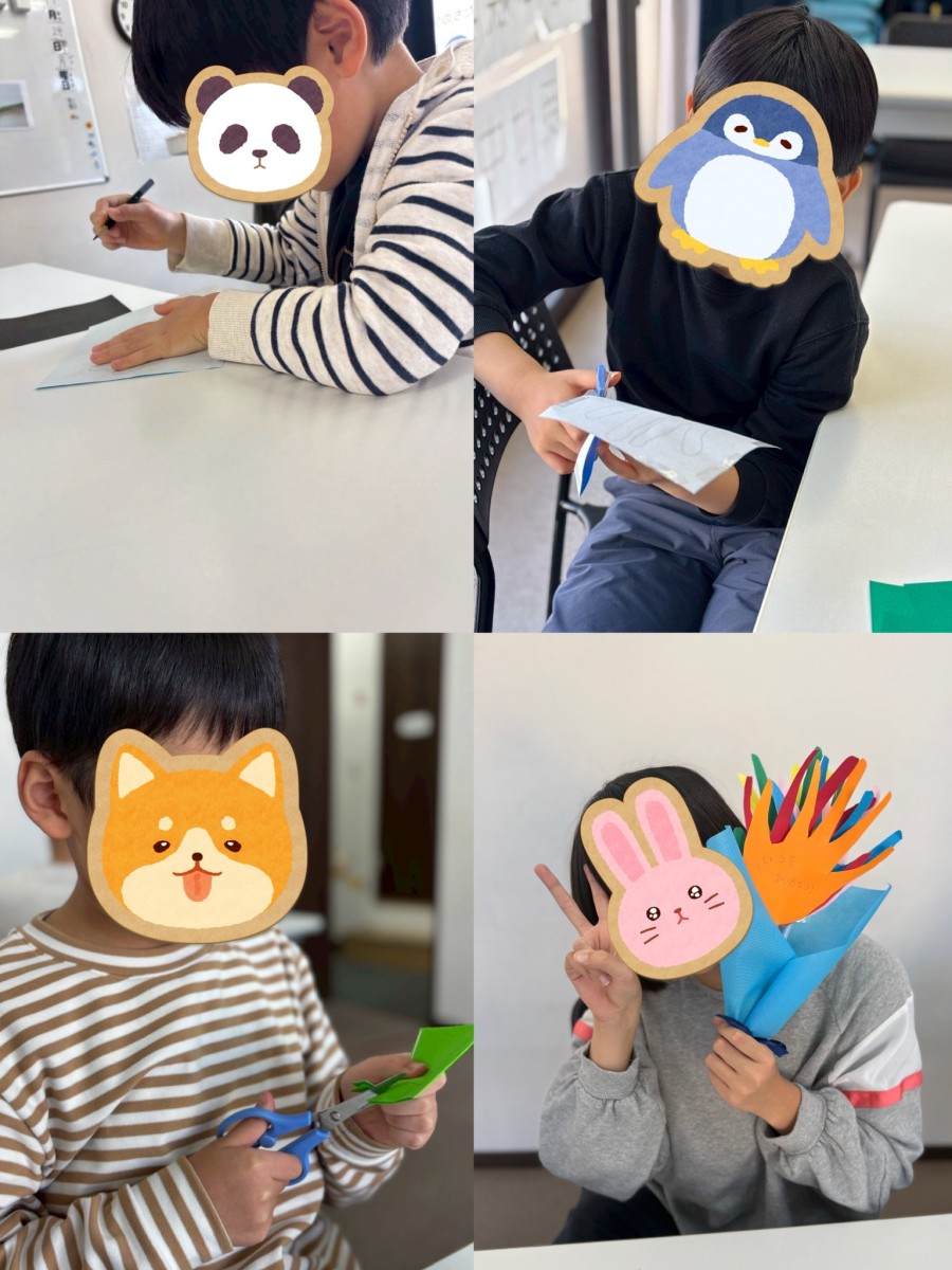 ・手形を鉛筆でなぞったり、ハサミで切ったりする作業を通して手指の巧緻性や集中力を養う。