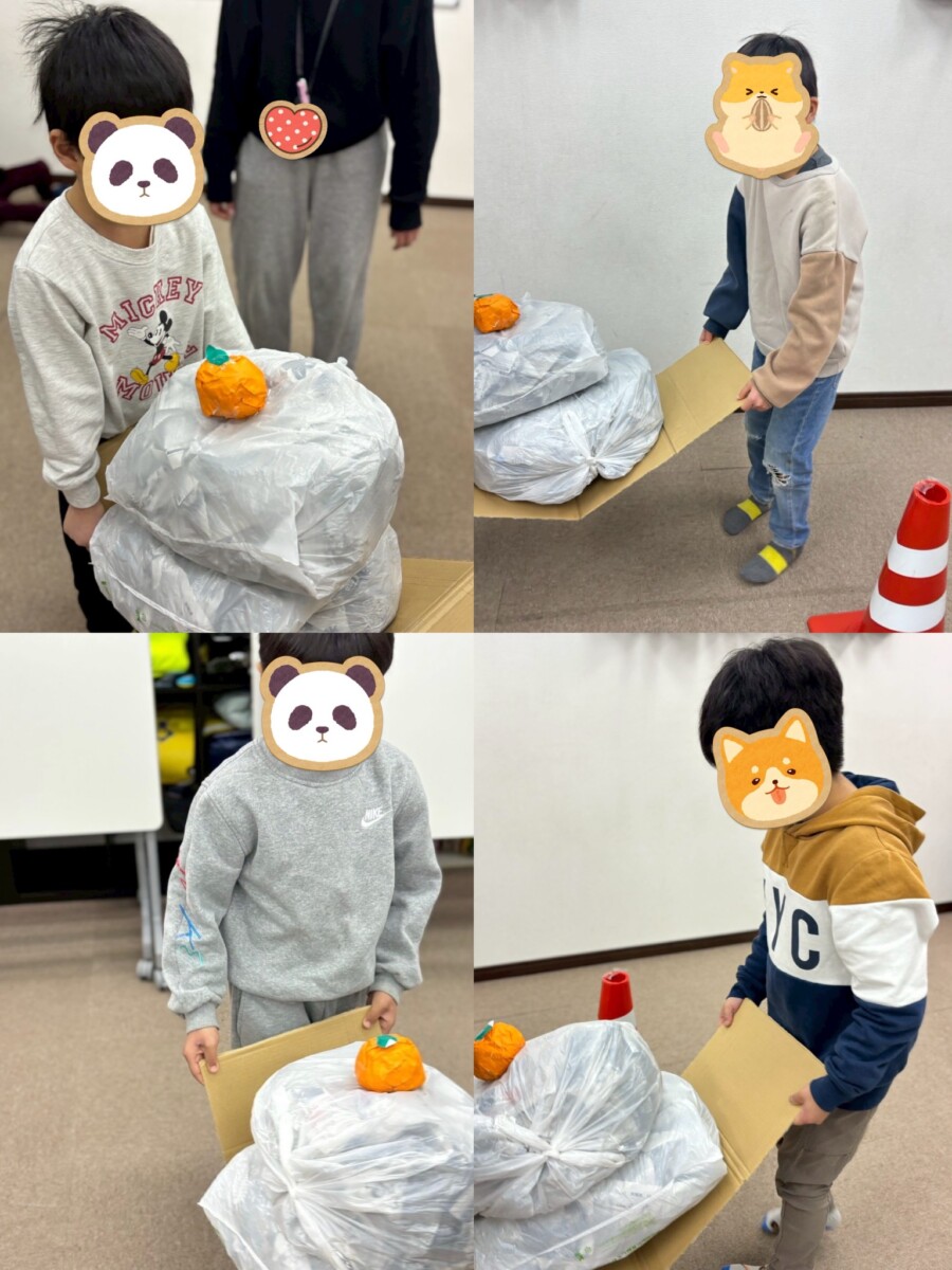 そのため、お友達とスピードを合わせて運ぶこと、前に進むことだけでなく鏡餅のバランスにも集中することがカギとなります。