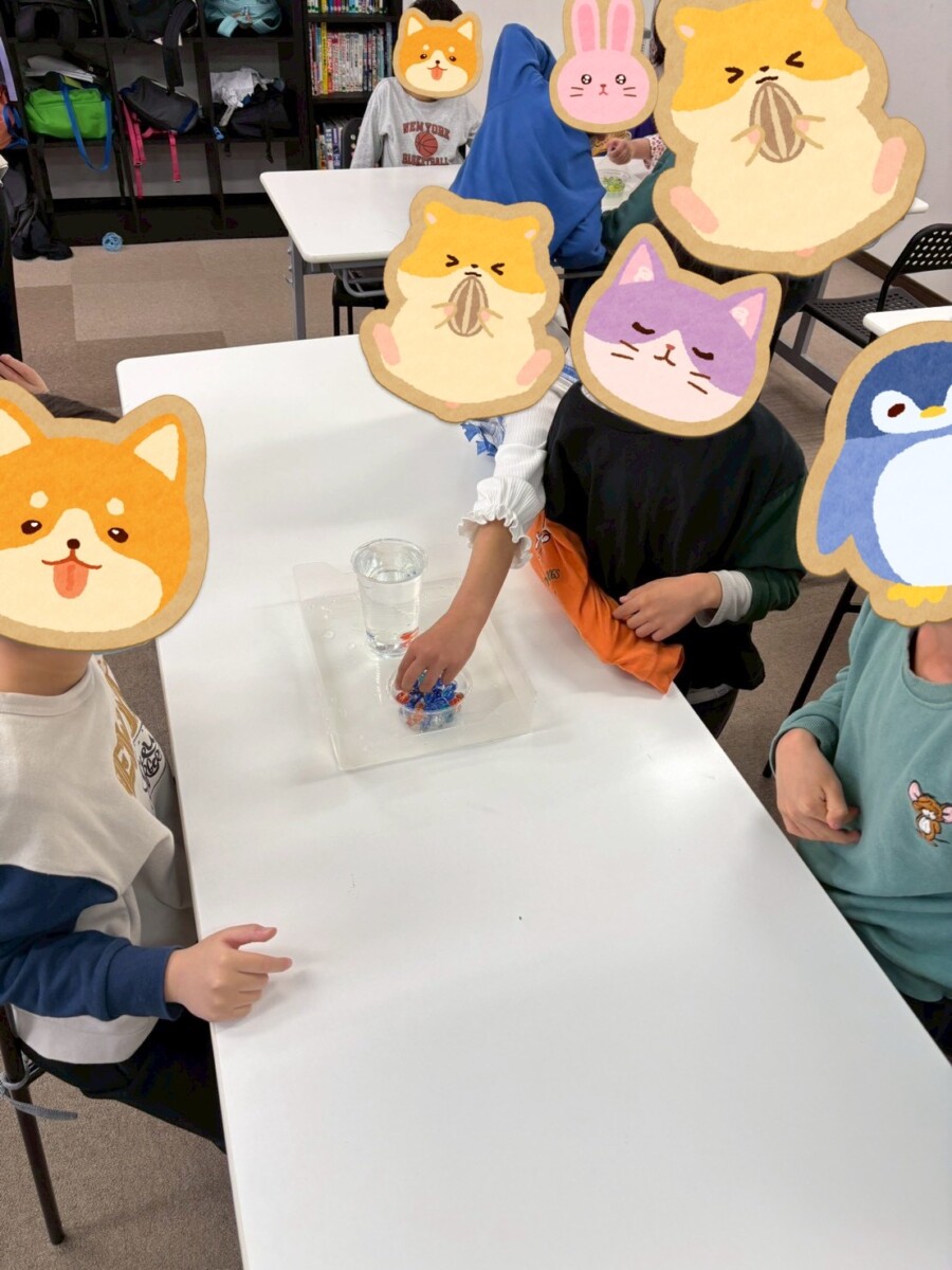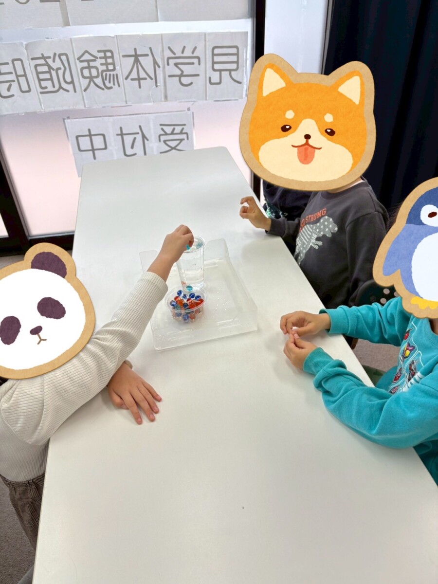 中には、水が限界に達する直前に表面張力を平行に見てビー玉を入れようとする工夫をしている子もおりました。
