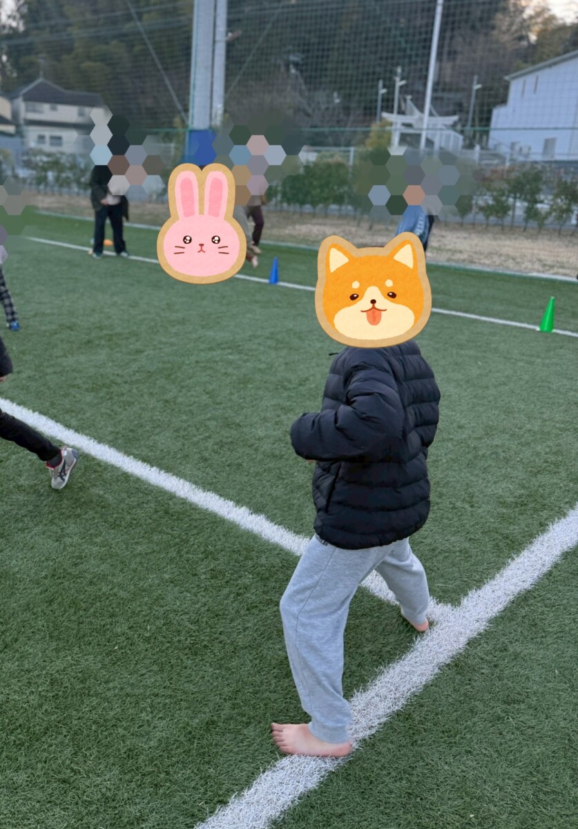 活動の後半はグラウンドの端から端までをスキップで進んでもらいました。1回目は手と足の動きがバラバラな子が散見されましたが、2回目は腕を大きく振って進ことを意識して、3回目はリズムに合わせて大きな声を出すことを意識して進むことで、みんなが飛躍的にスキップができるようになっていました。