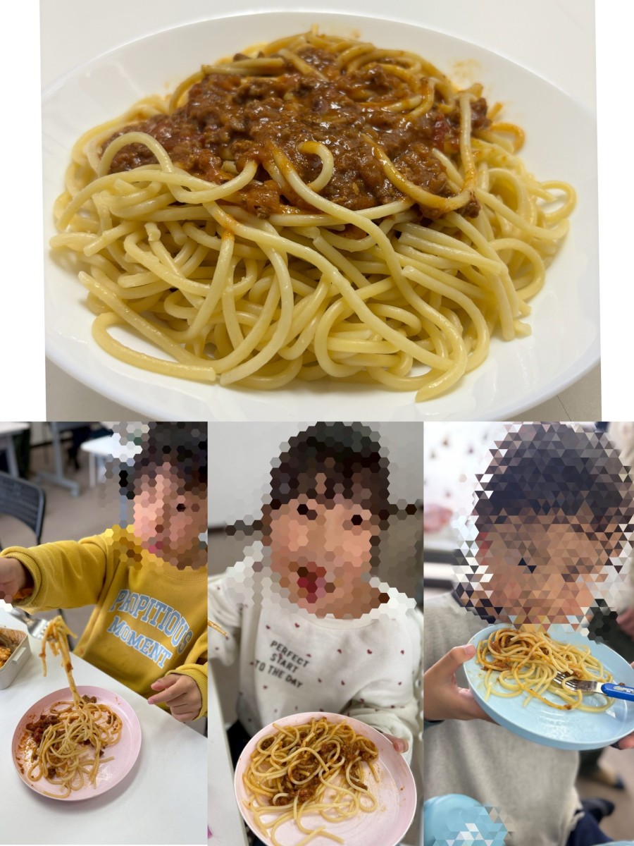 子どもたちもお弁当の時間に、お弁当を完食した後にも関わらずシェフのパスタも食べておりました。