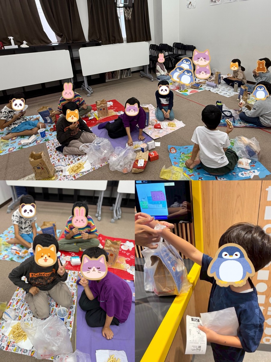「マクドナルドに行き、ピクニックをする」という内容ですが、自分で注文をしたり、自分でお会計をすることで、正しい行動や社会性を身に付けることを目的としており、普段、教室で行っている会話の練習を用いて店員さんと話す、またお金の支払いをしてお礼を述べることが、しっかりと般化できているかを確認するためのプログラムでした。
