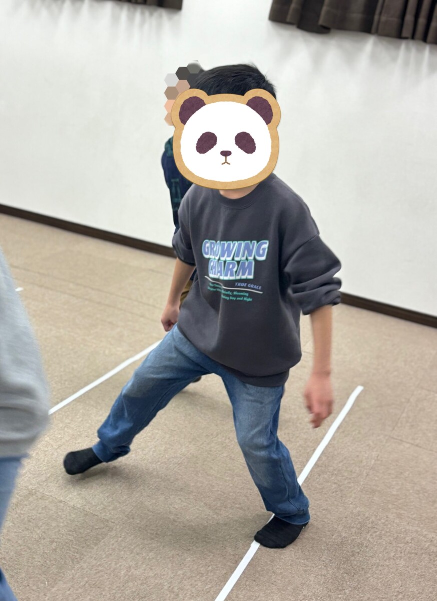 今回は80㎝の幅で線を引いて反復横跳びをしました。以前と比べて反復横跳びのスピードが上がっており、子ども達の成長を感じました。今回FORTUNAで行った反復横跳びを糧にして学校で行われる新体力テストを頑張ってほしいです。