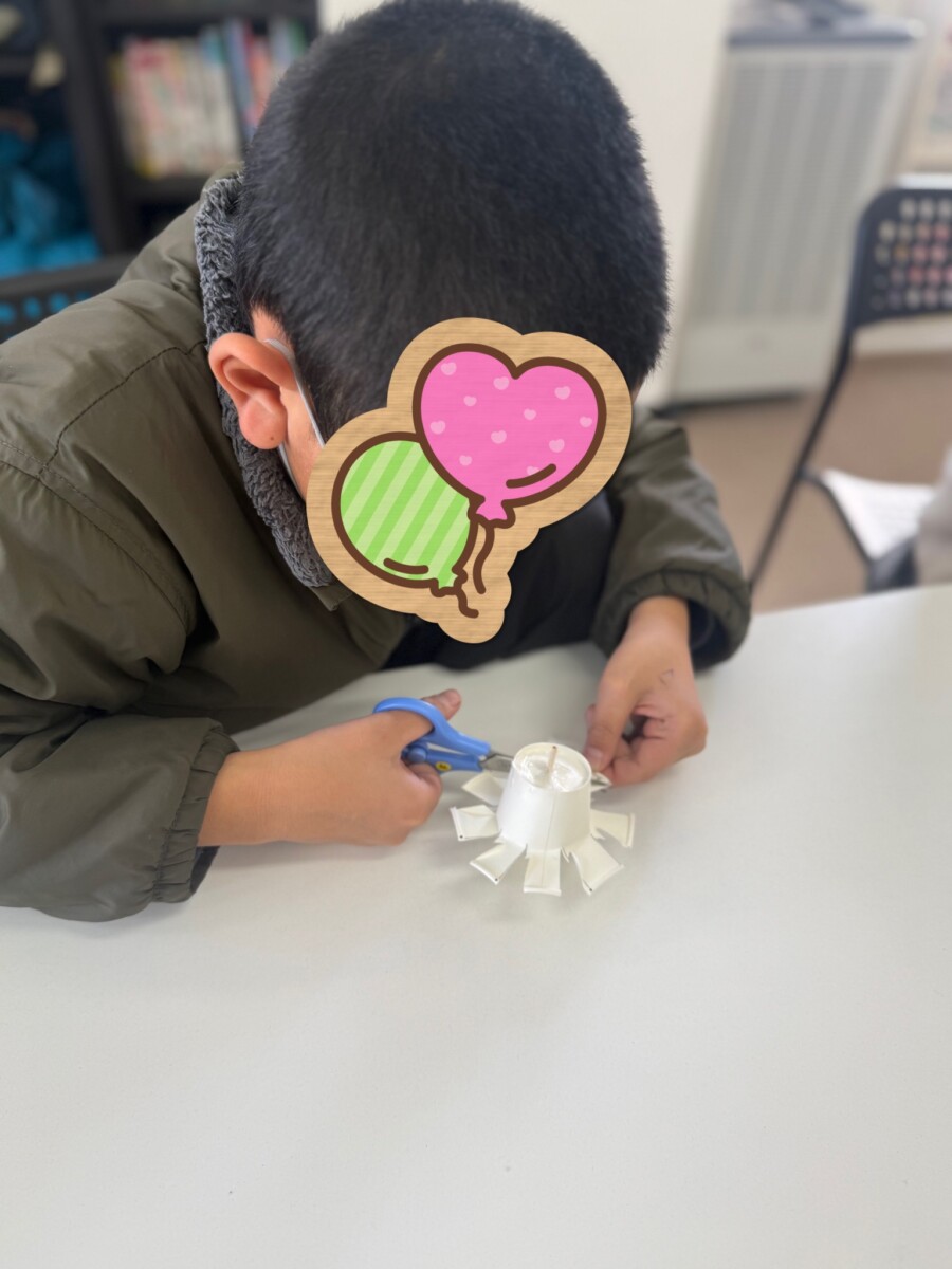 また、私は切り込みを外に向けて折ることが当然だと考えていましたが、切り込みを内側に折る子もおり、それぞれの工夫が見られました。