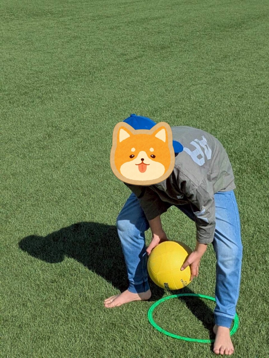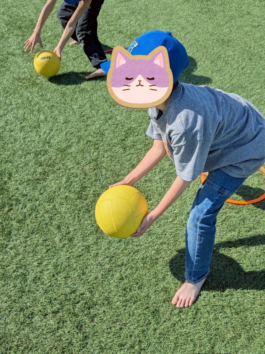 以前からグラウンドでは周りをよく見て動く鬼ごっこや、ボールを真っすぐ転がす活動を行ってきました。そこで今回はその両方の力が必要になる「トリカゴ」の活動をしています。
