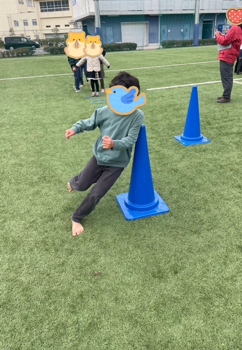 今回はジグザグに動くことでアジリティ(運動時に身体を上手くコントロールする力)を鍛えるトレーニングを行いました。