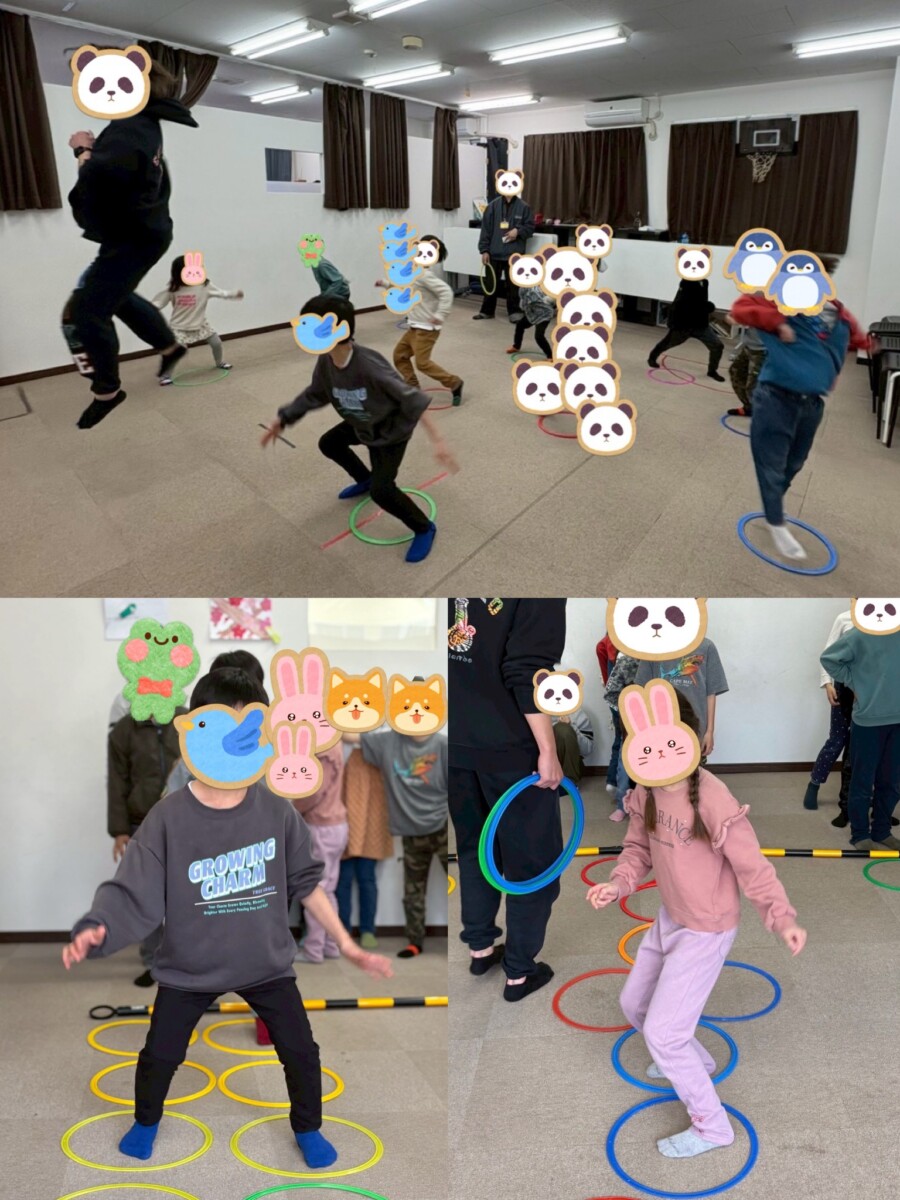両足ジャンプはグラウンドでも行っているのでほとんどの子どもが上手に取り組むことが出来ておりました。
