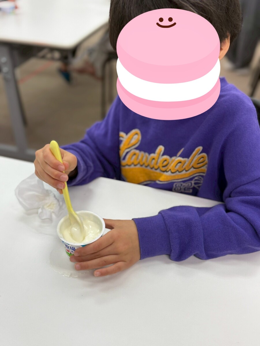 味の得意不得意ありましたが、ほとんどの子が美味しく食べていました。中には「お家でも作りたい」や「次はアロエのヨーグルトでやってみたい」など好奇心が生まれた子もおり、嬉しかったです。