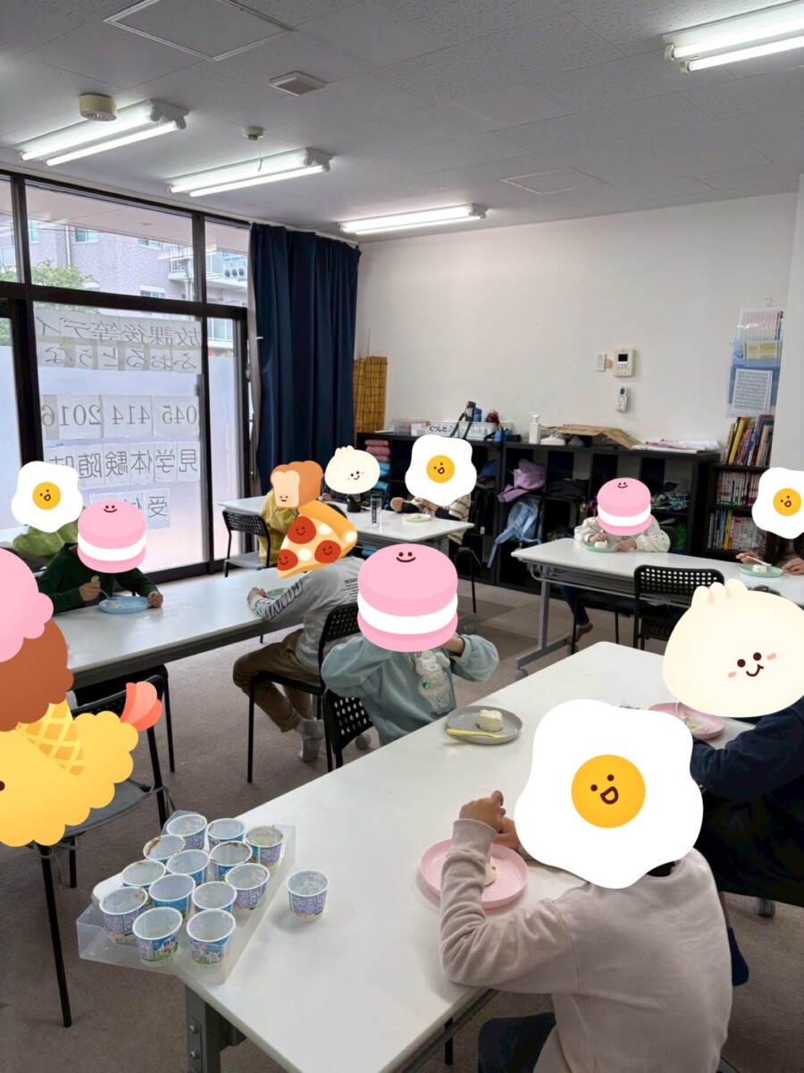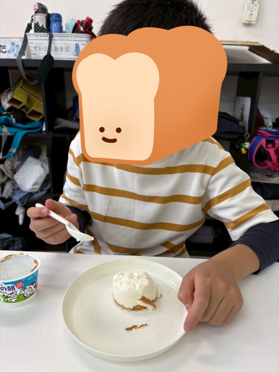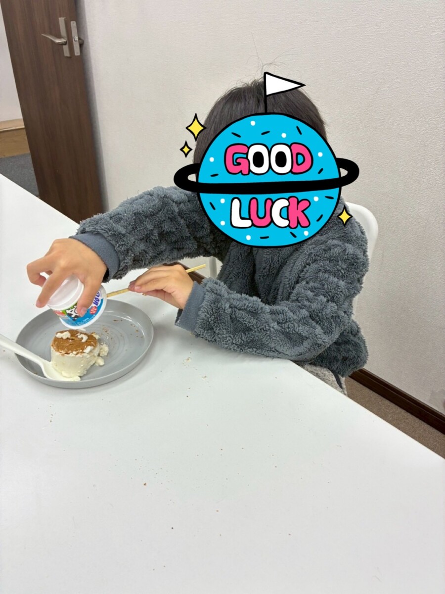 ヨーグルトを使ってレアチーズケーキ作りを行います。お友達と一緒に作ることで達成感や、お片付けを自分で行うことで自立心を養うことを目的としています。