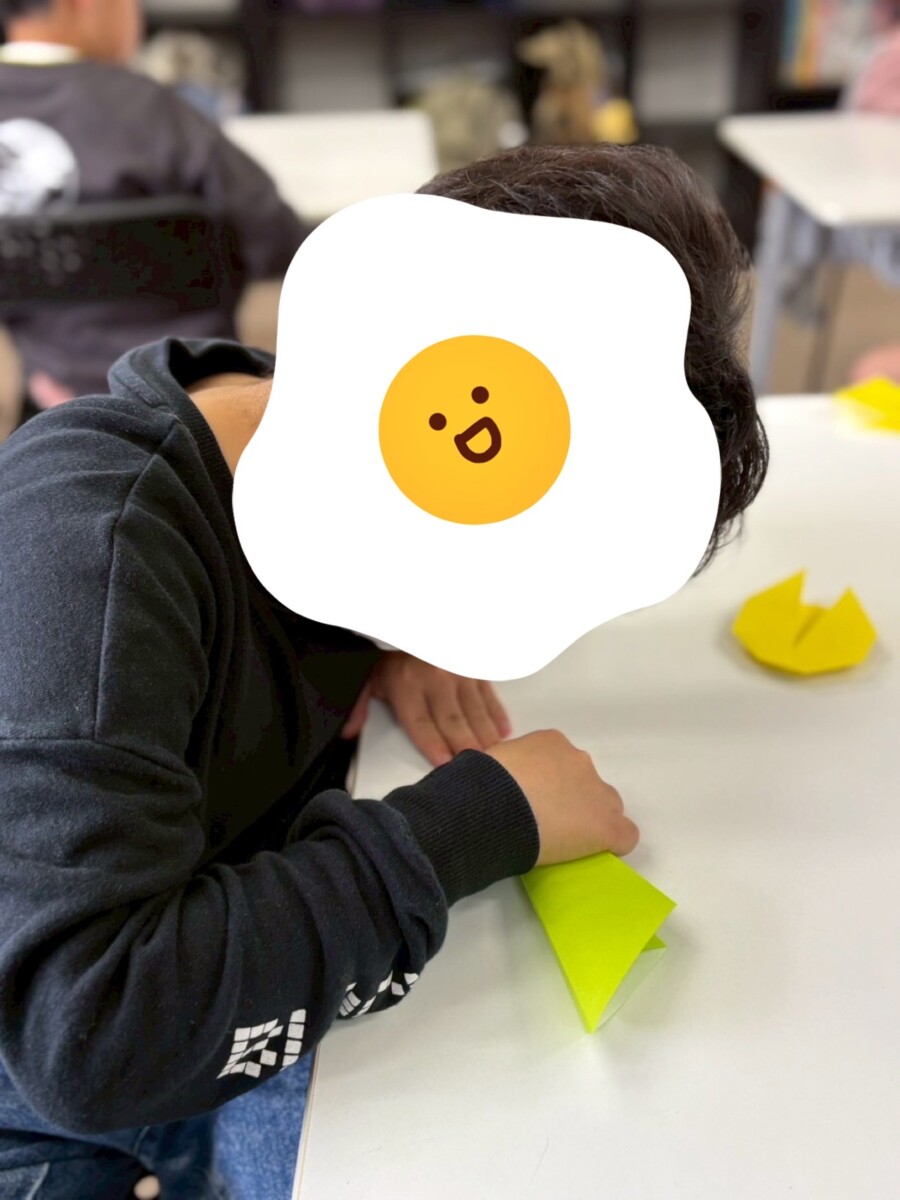 午前中は折り紙の制作からスタートです。職員の説明を聞きながら、一つひとつの工程を確認し、丁寧に折り進めていきました。少し難しい部分では「ここどうやるの?」と聞きながら取り組む姿も見られましたが、最後まであきらめずに取り組み、きれいなお花を完成させることができました。