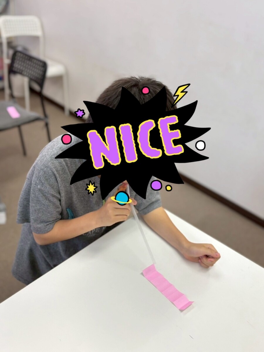 息を吹きかける場所、息を吹く力にで進み方が変わるので、どうやったらうまく進められるかも子ども達に考えてもらいました。