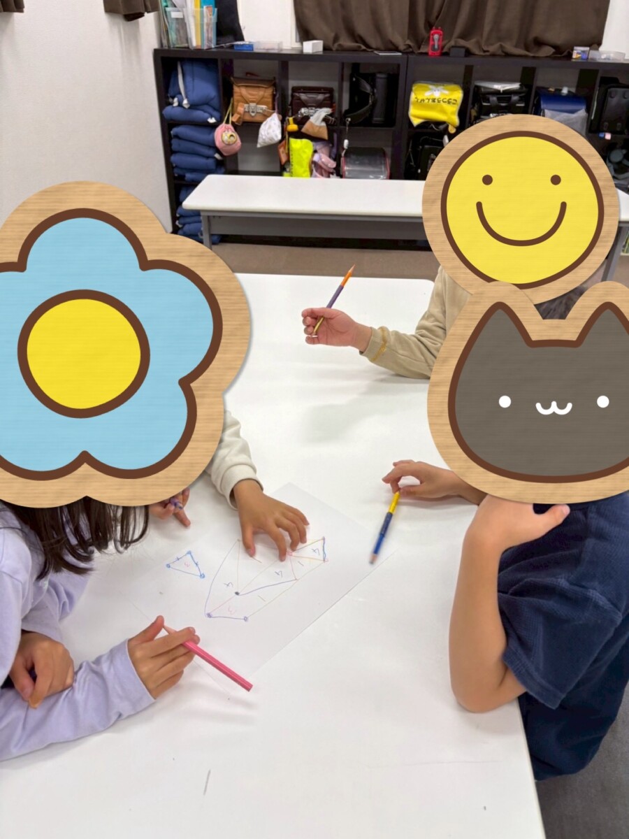 自分が完成させたかった三角形をお友達が先に完成してしまうシーンがたくさん出て来ましたが、すぐに気持ちを切り替えて次の三角形がどこに作れるか探してゲームを楽しむことができました。