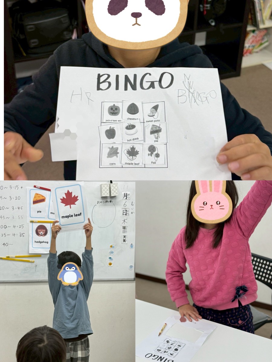 ビンゴの単語を皆の前で発表することや、お友だちの発音をしっかり聞くことにも慣れ親しんできたので、今後も自信をもって続けて欲しいと思います。